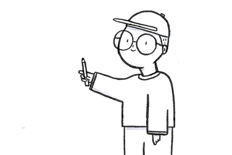 Michaël Monnier est aussi journaliste en dessin. Il utilise l’un de ses autoportraits à titre représentatif. « Je ne suis pas journaliste et/ou enseignant et/ou directeur de stage conventionnel. Je ne m’habille pas en costume et cravate. Je donne mes cours avec ma casquette et mes hoodies. Je suis quelqu’un de proche du monde », complète-t-il.